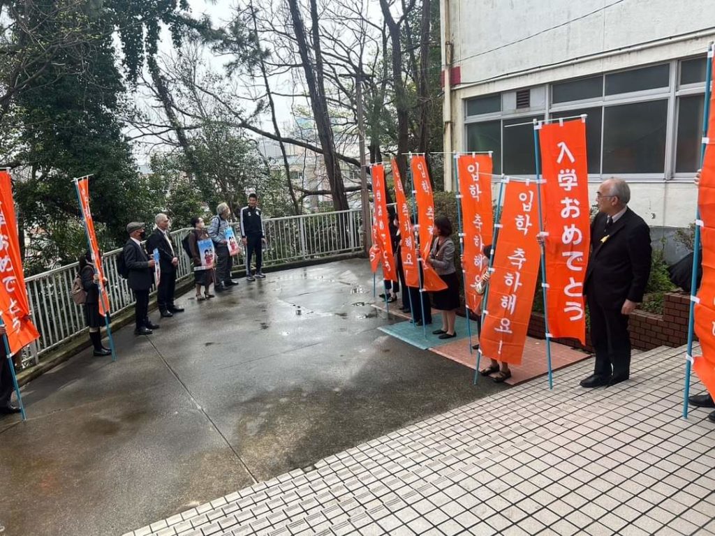 当時、息子を連れて入学式に行くと、入学式が行われる体育館の前で「入学おめでとう」と日本語と朝鮮語で書かれたのぼりを持って並んでいる人たちがいた。